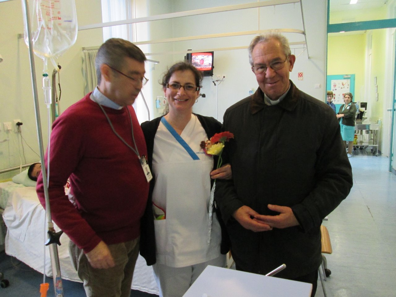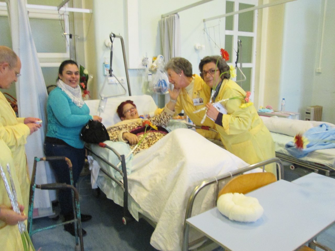 É isso que nos move e por isso cá estamos. Os nossos doentes foram este ano permiados com flores, mensagens de rápida recuperação, doces para alegrar o lanche desse dia e ainda uma surpresa maior e para muitos dos que lá se encontravam, única: a visita do Sr. Bispo de Setúbal D. Gilberto Canavarro.